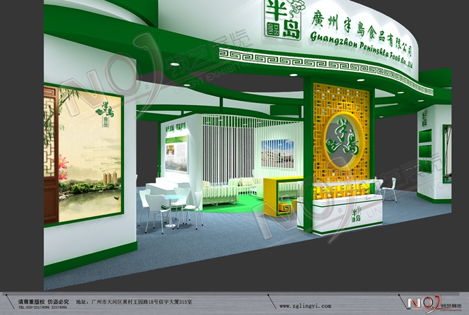 巧妙的運用白色、綠色作搭配,著重突出品牌和產(chǎn)品的展示,使整個展位時尚新穎。